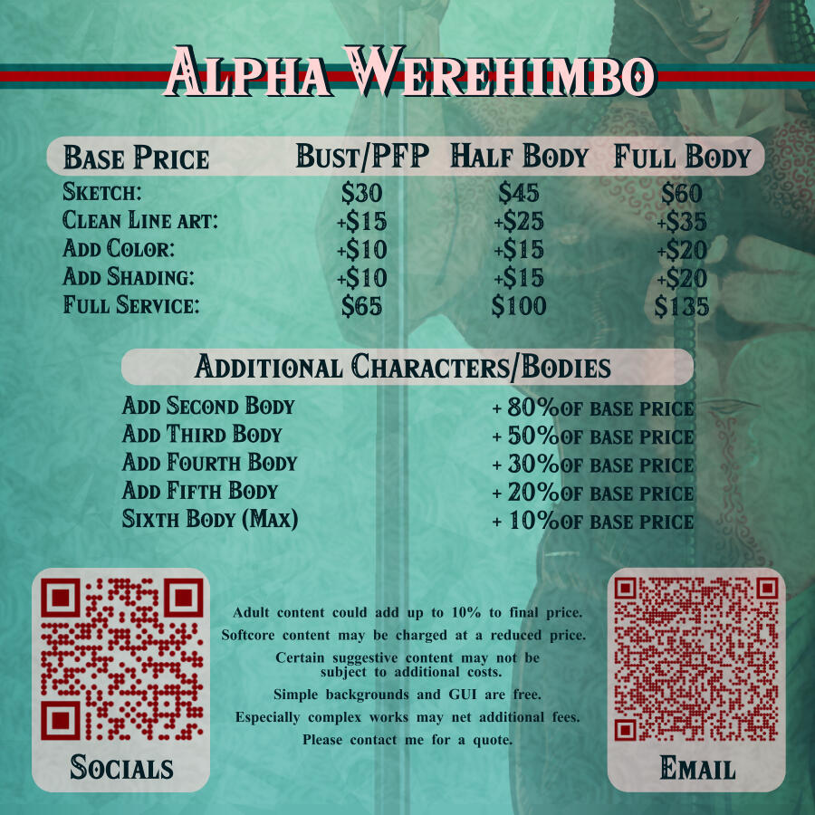 This chart is for estimating the approximate cost of your project.Cleaned Line Art, Color, and Shading are separate upgrades to apply to your commission.